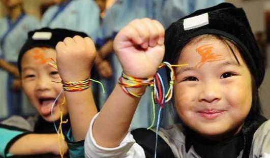 六、可以孩子身上拴上五色丝线。由于古代崇拜五色,以五色为吉祥色。所以,在端午节的这天清晨,可以在孩子手腕、脚腕、脖子上三处拴上五色线,以避开蛇蝎类毒虫的伤害。