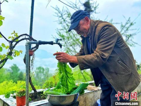 临近中午,湖北省长阳土家族自治县龙池村7组村民柳昌群拧开水龙头,白花花的自来水喷涌而出,在菜叶上溅起清澈透亮的水珠。
