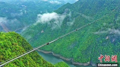 “龙池飞线”单跨1480米,最大悬空高度600多米。 周星亮 摄