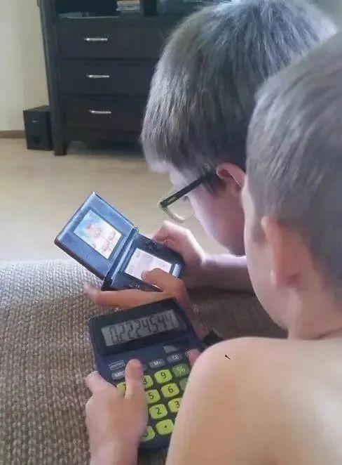哥哥玩游戏机,弟弟只能玩计算器: