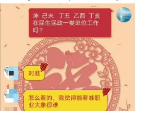 又如职业取象:坤 己未 丁丑 乙酉 丁亥,乙从未中出,到丑中去,月时日丁乙 丁皆是丑库物,己未冲丁丑,冲出丁火反哺,丁巳民众,所以是民生民政一类的单位。