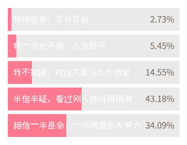 年轻人多半都是不信命的,我们从小到大收到的教育都是命运掌握在自己手中。只是当我们慢慢长大,也会跟长辈们们一样,慢慢相信了命。但也只是半信,另一半我们还是会坚信努力了会改变运的。