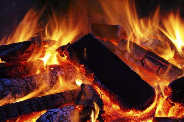木炭在火中燃烧