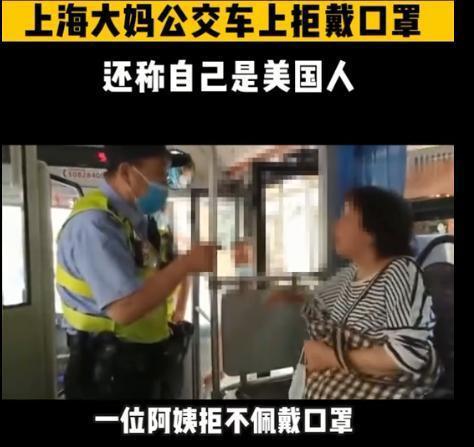 继北京“正黄旗”大妈被行拘后,上海又有一位大妈,坐公交不戴口罩,还声称自己是M美人(假的),拒绝配合,最终被民警带走。