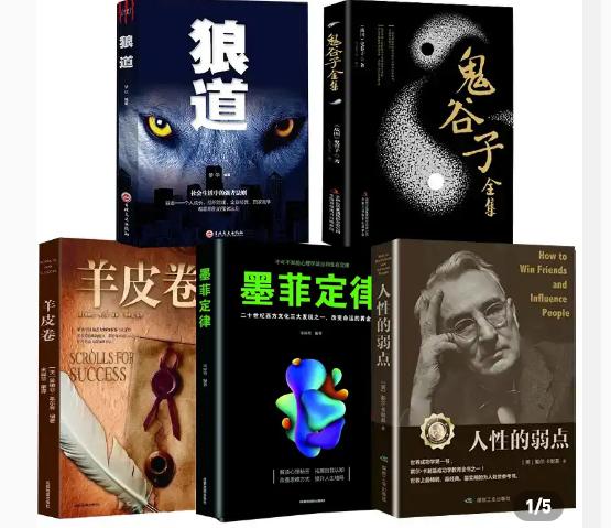 【联嘉图书】5册 鬼谷子狼道 羊皮卷墨菲定律 人性的弱点 ¥68 购买扫描二维码分享到微信或朋友圈