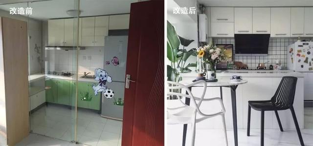 # 拆掉原来厨房的玻璃门将厨房变成全开放式,并划出一部分空间巧变阳台。