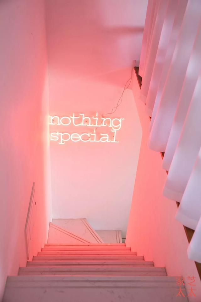 Kim家最惹眼的是这条很艺术的走廊(拉到上方看视频,更能感觉出这种迷幻哦),让这条普通的走廊变得如此special的原因是“nothing special”——一个霓虹灯箱。