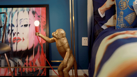 另一处有意思的灯光在卧室,Seletti的Monkey Lamp点亮了Kim最爱的偶像麦当娜的画像,仿佛是对偶像的朝觐。