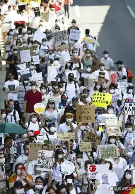 包括美国总领事馆前的街道在内的约2公里,一边发出“反对种族主义”的呼声一边游行。