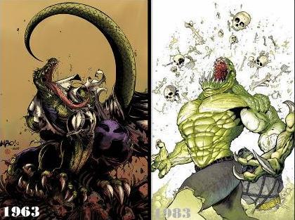 共同点:能力大部分相似,不过战力应该沼泽怪物更厉害些,漫威这边这位就被归队到神盾局旗下的怪兽系嚎叫突击队里去了,不过这两位说不上谁“借鉴”谁,因为早在40年代就有家漫画公司推出过这类型人物。