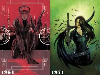 共同点:一位是精通十八般武艺和兵器的特工,一位是精通十八般武艺和兵器的刺客,两位都是大名鼎鼎的人物,黑寡妇就不介绍了,塔莉亚是忍者大师的女儿,也在诺兰三部曲里出现过,在漫画里是蝙蝠侠的最爱后宫之一,貌似还帮老爷怀上了孩子···比起黑寡妇,这位穿衣服的颜色貌似选择性更多一些··