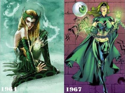 共同点:两个都是偏爱绿色的巫婆,都能使用各种魔法和控制别人心灵,漫威这边身边一直跟着哥刽子手,DC这边身边一直跟着个眼球。