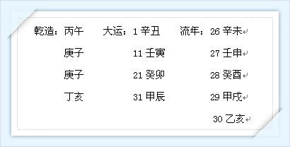 该男已27岁(指2001年),属于大龄青年了,常为婚姻而苦恼,谈了数不清的对象,高不成,低不就,父母亦为之焦虑不安。我告诉他2004年甲申才是结婚之期,应耐心等待,有情人到时会成眷属。