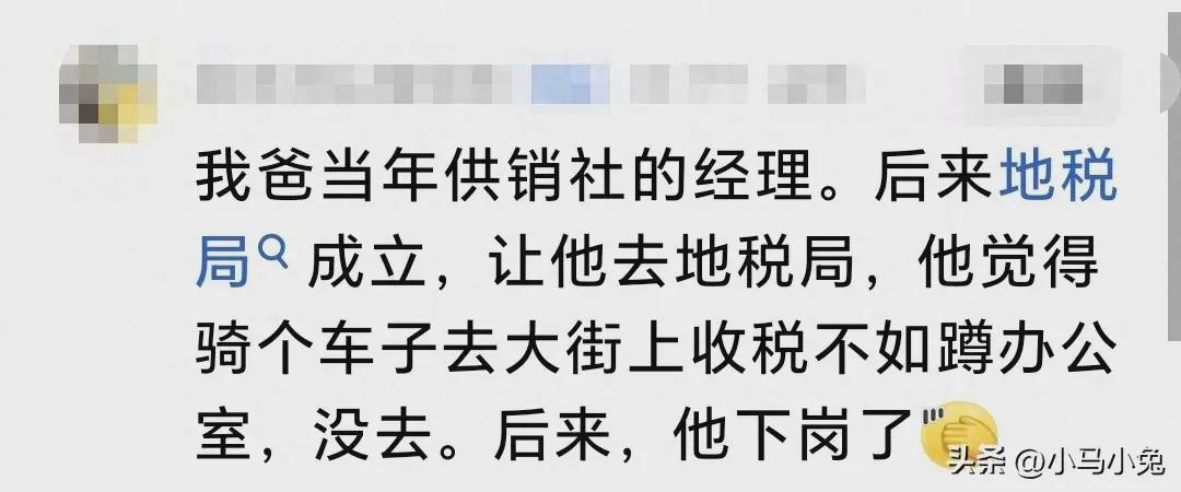 ①那个时候供销社的真的看不上税务局,我一亲戚也是在供销社先后拒绝了去电力局、交警队、税务局的机会,那时体制内的公务员收入很低的,很多人都不愿去。