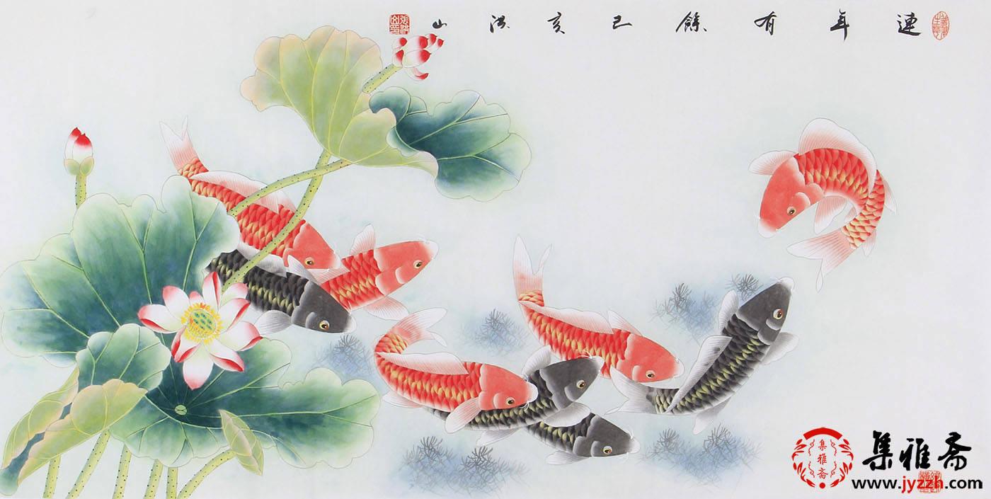 鱼+荷花:寓意就是连年有余,代表生活富足安康。