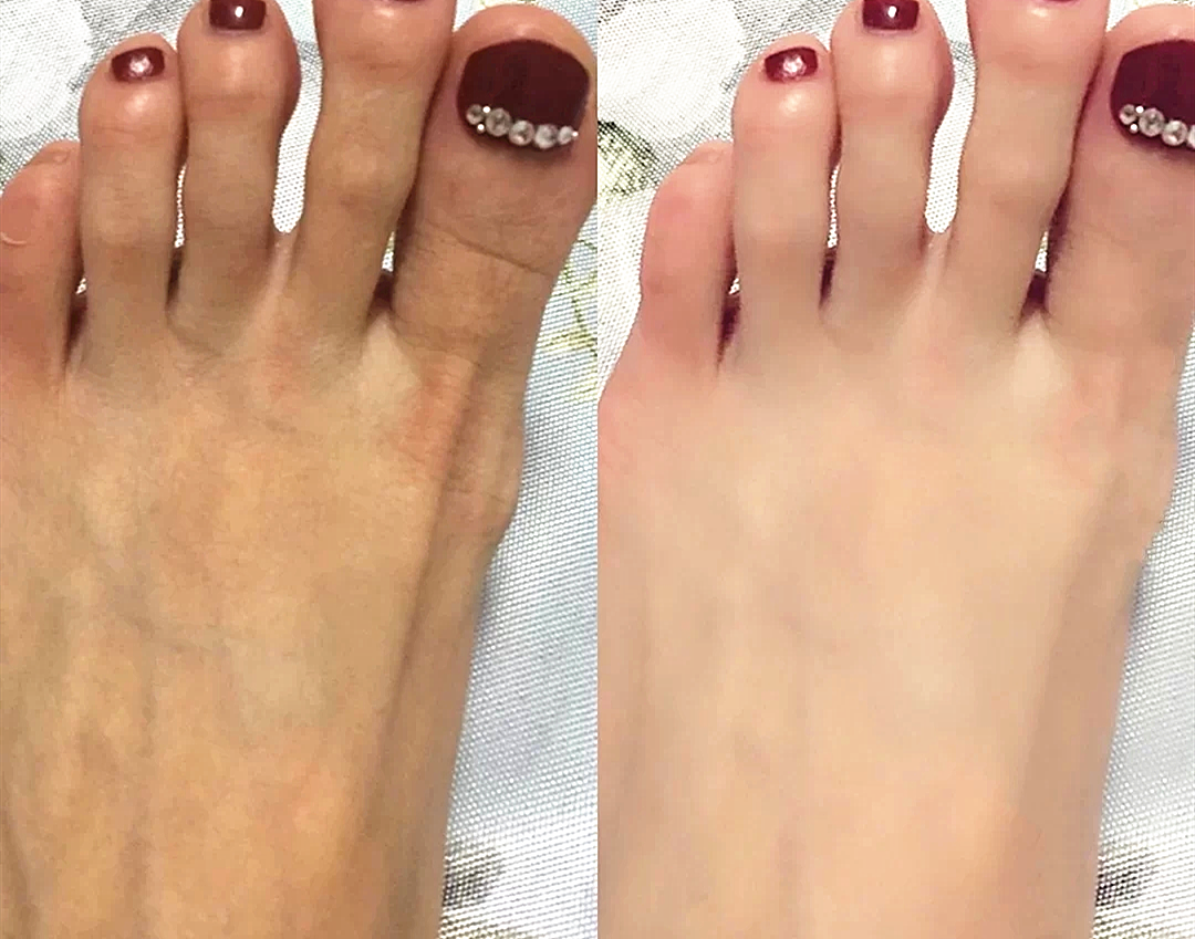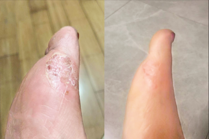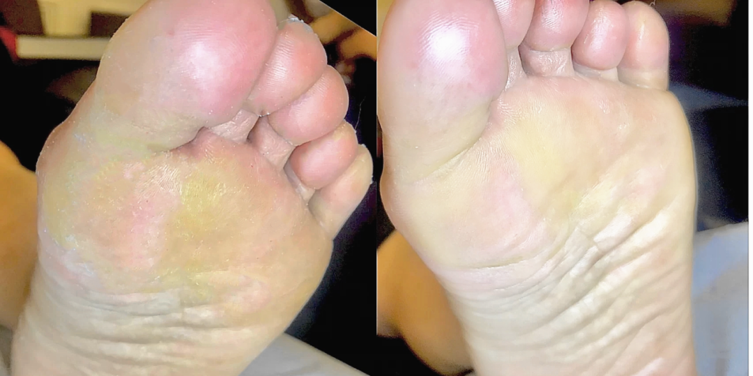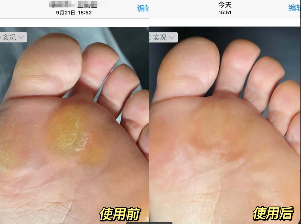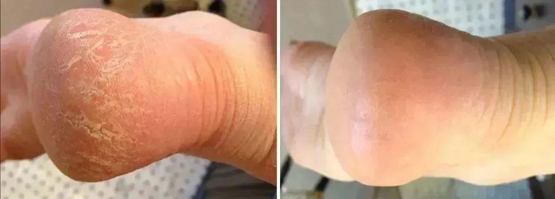 看对比图,变化太明显了,原本干燥脱皮的脚底,变得光滑平整!