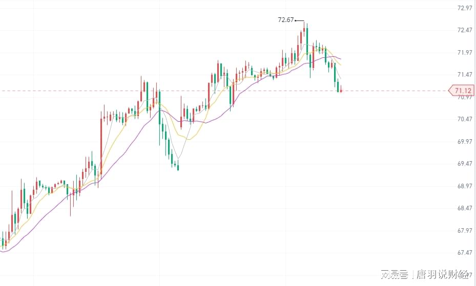原油连续两天都先涨晚间再回落,但是行情就是一步步在走上行在破高,目前下跌至71,昨天72空单的可以离场了,原油在多方面的有利消息作用下,高低点一直往上走,行情明显回到了震荡上行的态势,短期走势倾向多头运行,回踩70.8附近做多,常规止损,目标71.8-72.3.