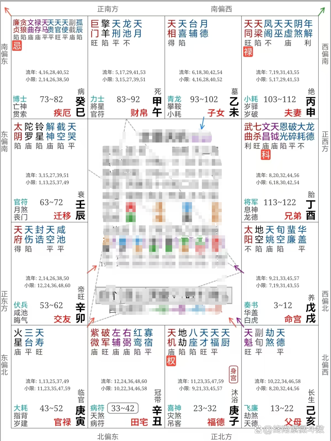 打开自己的命盘,例如我们看案例52这张命盘,前面我们讲过,生年科的象,是自己命盘中专门代表贵人的象。那该命造的生年科在兄弟姐妹宫,宫象合一的角度而言,其此生最大的贵人,就是他的兄弟姐妹,因生年科所在的人位,该位置就是其贵人所在。
