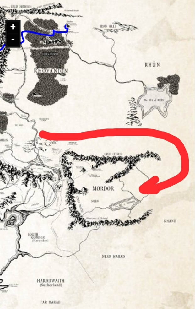 据说魔多四面环山,没有其他通往魔多的通道,但如果从“鲁恩之海”南边走,除了黑门和尸罗巢穴之外,山周围还有一片空地?