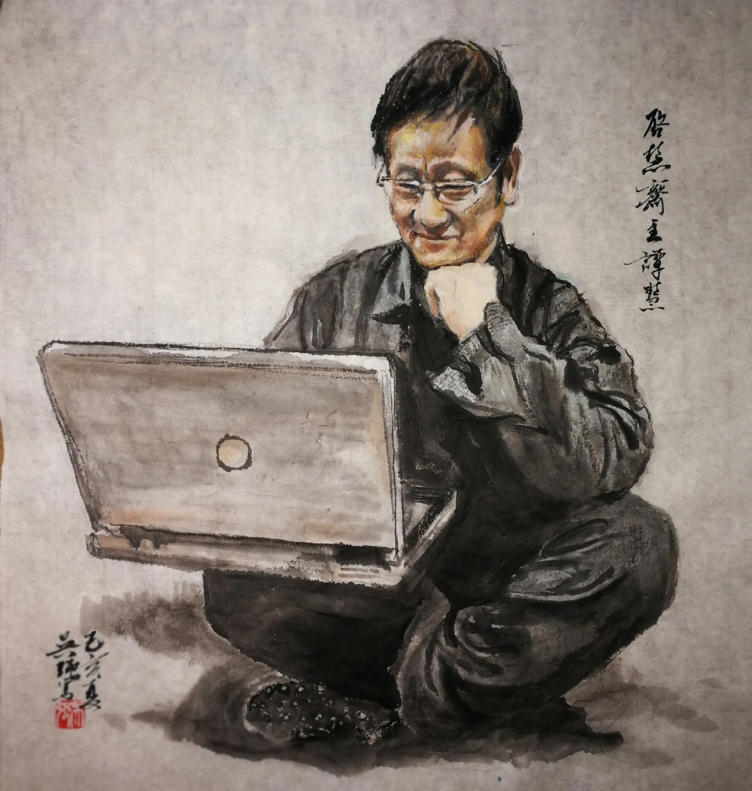 吴强创作的现代水墨人物画