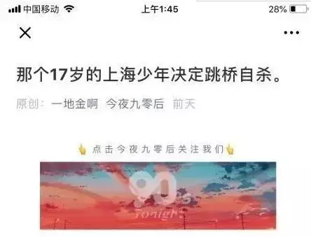 “17岁上海少年跳桥自杀事件”,已经对当事人的妈妈造成了很大的痛苦,但一些自媒体完全不顾及这位母亲的感受,没有任何依据,就大写特写母亲的种种错误行为。