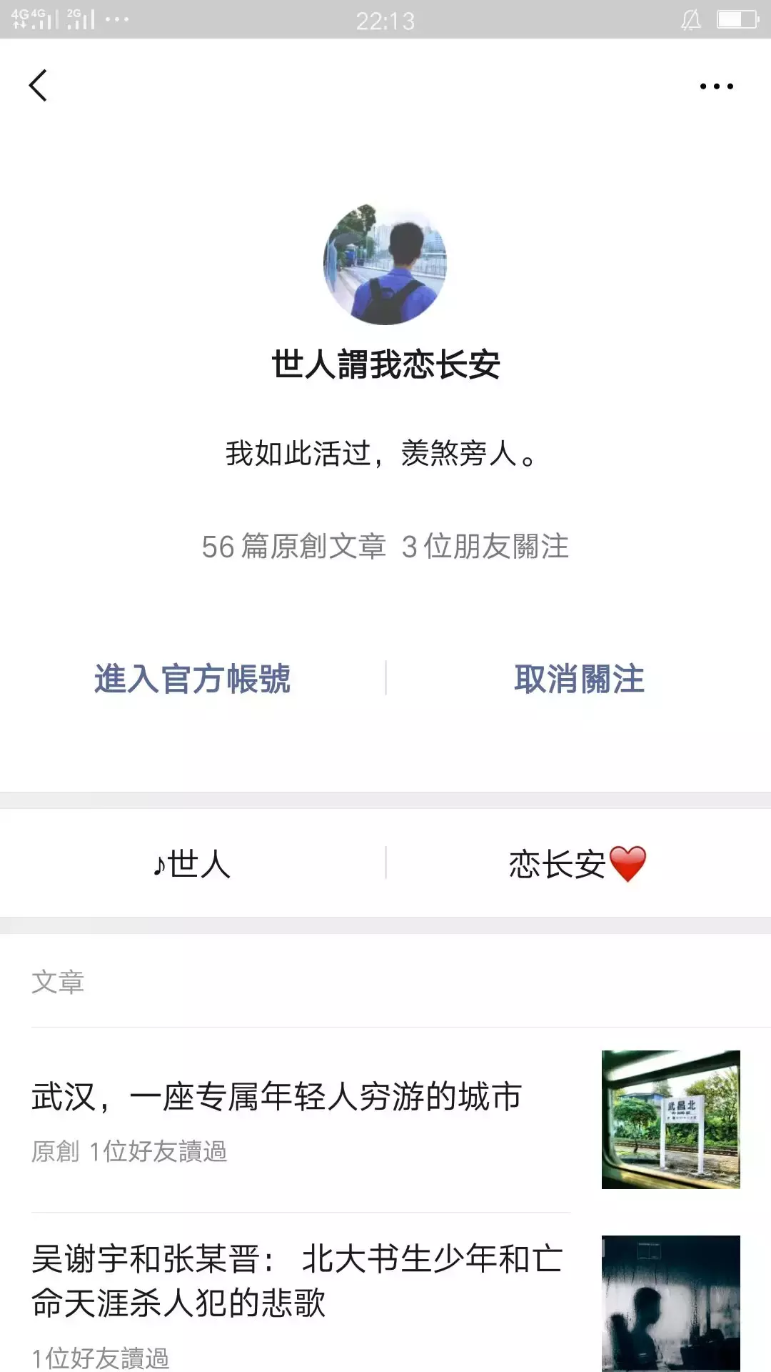 他在公众号的签名看起来也很文艺很温暖: