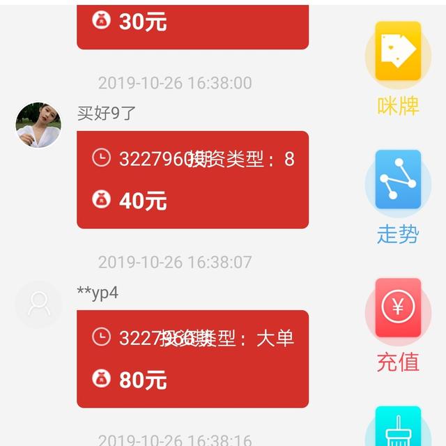 坏就坏在中间陌陌上我又找了一个也投这种彩票的人,他说他是当兵的,做花草生意,他说我男朋友的是黑平台,另外一个人的也是黑平台,他的是正规平台他投了五六年了,他也带我投过几千的,赚了几百块,那天他说走势好带我投,他说他本金30万又加了二十万备用金,结果那天他带我亏了一万,他说他也亏了,他说少规划了几期,对我很不好意思,反而搞的我不好意思了。