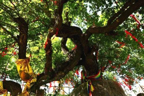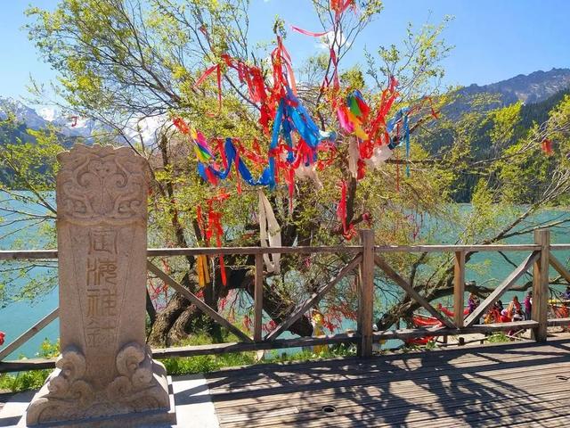 天池北岸的这颗古榆树,相传是西王母的神簪化成。实际上,这颗古榆是后人或西王母为纪念穆天子所栽的槐树,而在天池北岸池边栽的适于该地水文土壤的榆树的后代。