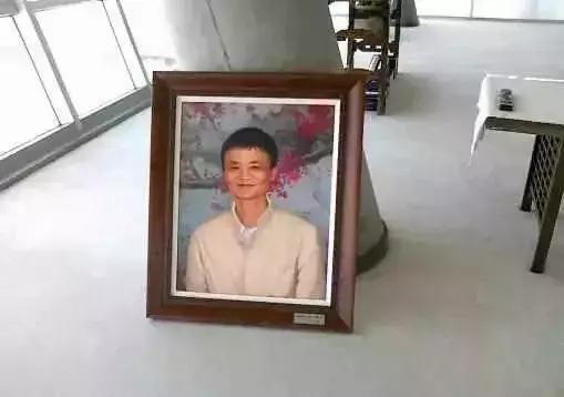 马云像不是挂着的,反而放在地上。这是马云要时刻提醒自己,要脚踏实地,不要高傲飘忽。