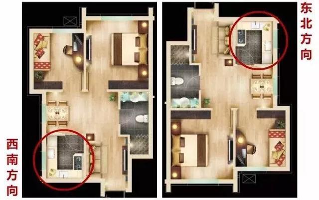 因而西南、东北方的厨房在风水上是最佳的,有利于女性的健康和孩子成长。