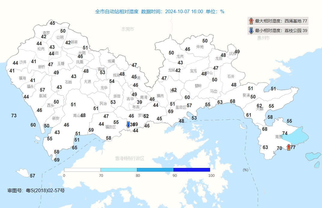 全市大部分地区相对湿度已降至50%以下,天气持续干燥,注意补水保湿。