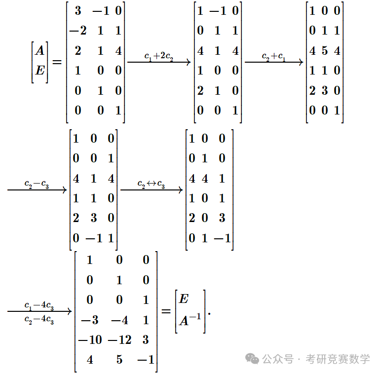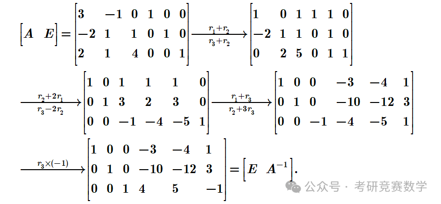 【注】:(1)用上述方法求逆时,初等行变换须贯彻始终,期间不能有任何一次初等列变换.