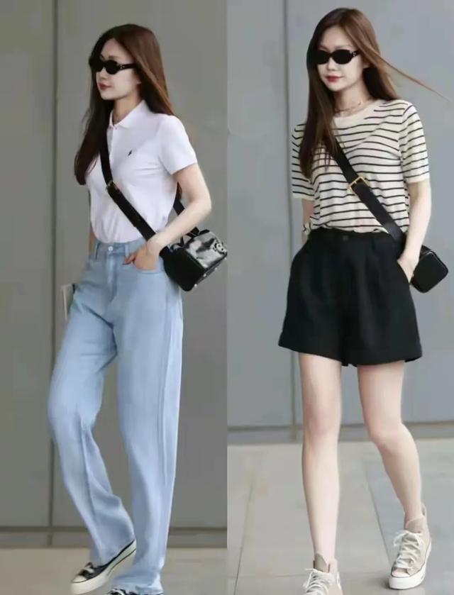 当然,如果你的腿型很不错的情况下,也可以选择条纹的短袖上衣搭配上黑色的短裤,这样的穿衣造型是属于下半身失踪的穿搭技巧,能更好地展现出你的大长腿。