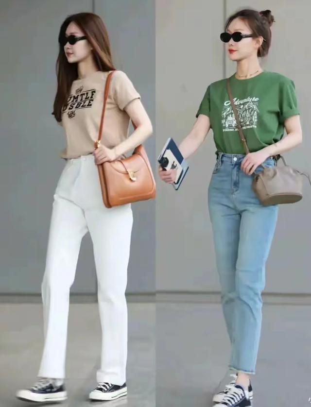 其实我们有的时候没有必要把自己打扮的很成熟,反而丑休闲风会更加的亲民随和。嘞哟,博主就选择了纯色系的短袖上衣,搭配上白色牛仔裤和蓝色牛仔裤,脚上同样是搭配的黑色的帆布鞋,呈现出来的视觉效果又飒又美。
