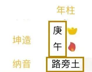 比如:天干 地支组合为“庚 午”,纳音为其命名为路旁土。