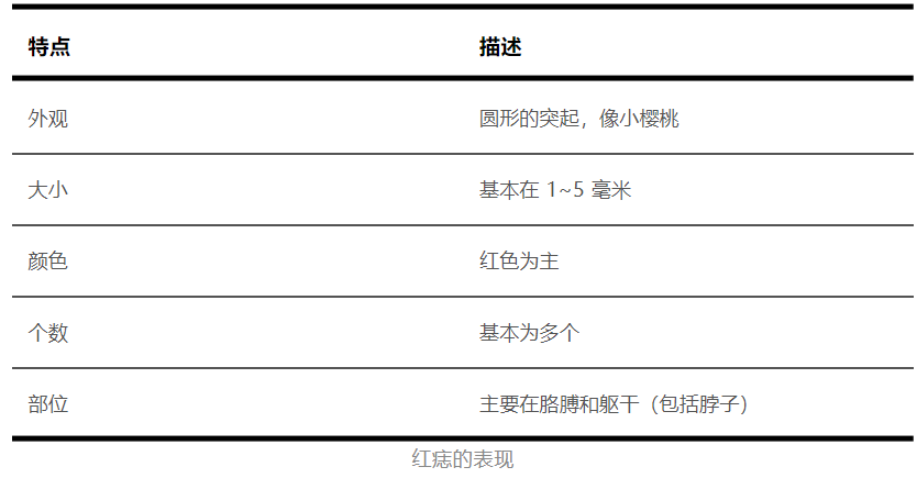 下面我们通过表格梳理了红痣的主要特点: