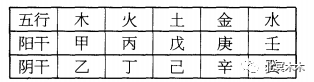 甲丙戊庚壬为五阳干,乙丁己辛癸为五阴干。甲乙都属木,但阴阳属性不同,甲为阳木,乙为阴木;丙丁属火,丙为阳火,丁为阴火;戊己属土,戊为阳土,己为阴土;庚辛属金,庚为阳金,辛为阴金;壬癸属水,壬为阳水,癸为阴水(见表)。
