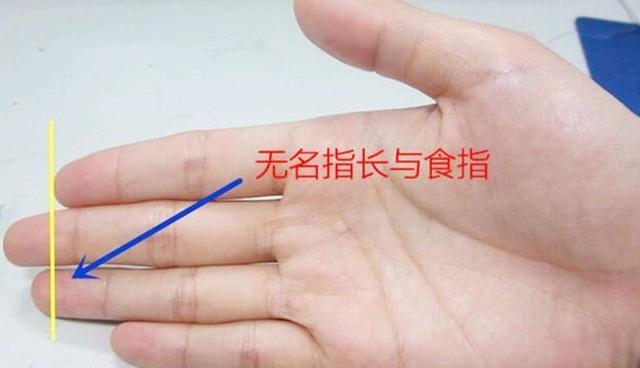 一般来说,男性的食指要比无名指短,而女性的食指和无名指差不多长度,甚至食指的长度会更长一些。