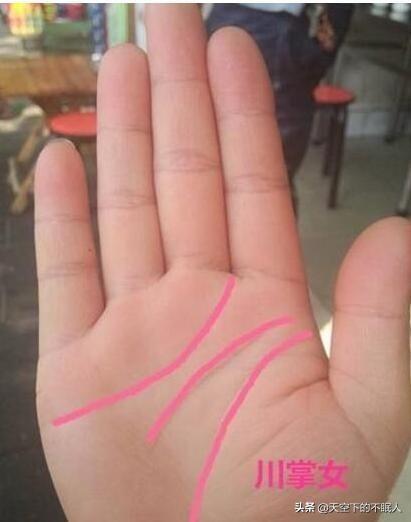 2:川掌女,一般都是辛苦命,女人撑起“家”的天,没有个强大的丈夫可以依靠,只能凡事依靠自己,一生操心有操劳。但是,川掌是事业有成的标志,放在女人身上也不会太差,至少能够凭借自己的强大和努力逐步改善生活。