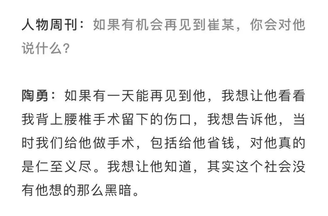 当初患者暴力伤医事件出来后,我对陶勇的采访印象很深。他全程表现出来的善意、温和、理想主义让人难以忘怀。