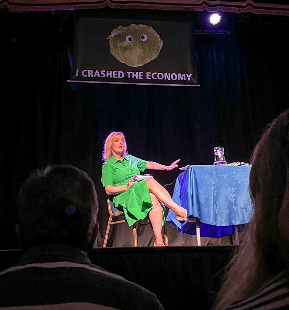 综合英国《卫报》报道,当地时间8月13日,特拉斯在推介会上发言,这时一张绘有长着眼睛的球生菜且配文“我搞跨了经济”的横幅缓缓在她身后降下。被冒犯到的特拉斯很快离开了现场,随后在社交平台对这一恶作剧表达不满。