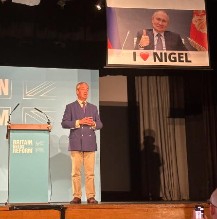 当时,法拉奇正在竞选集会上激情演讲,一张印有俄罗斯总统普京微笑着竖起大拇指点赞的大幅海报出现在他身后,海报上还有一行粗体字,写着“我爱奈杰尔”。在公开采访中,法拉奇曾强调,欧盟和北约的扩张是冲突爆发的关键因素,并表达自己对普京才能的钦佩。