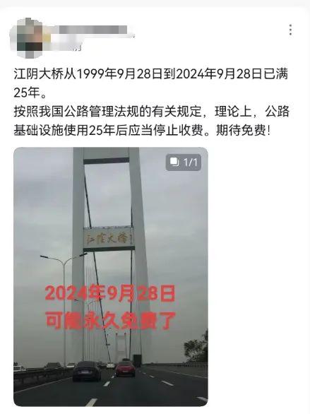 2024年9月便是江阴大桥收费的
