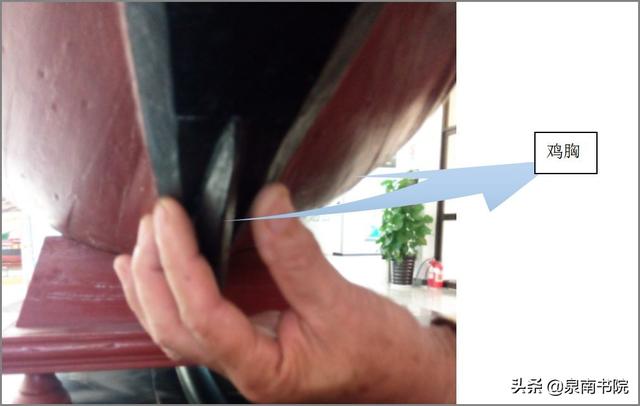 鸡胸:龙骨前端与艏面头犁壁交界处的一似鸡胸的三角形立体木,起开浪及减少阻力功能;