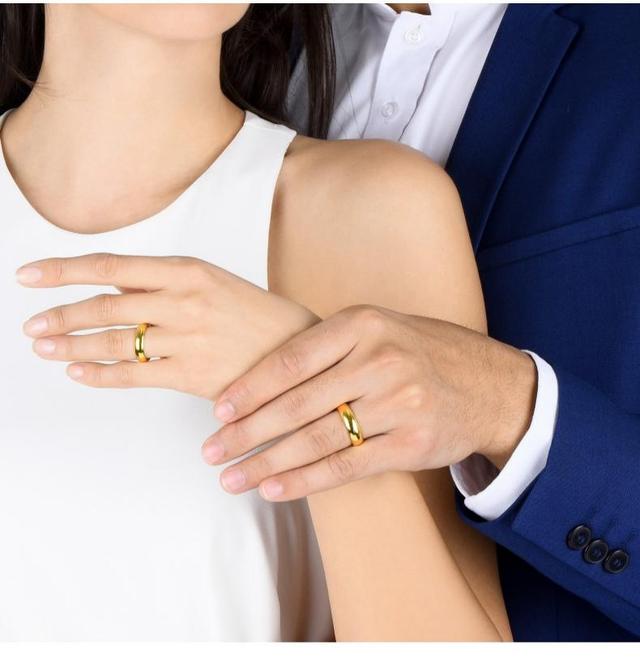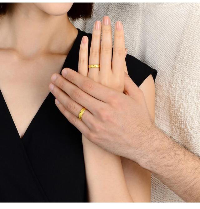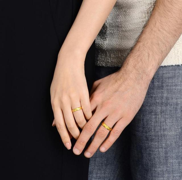 其实这类时尚情侣款黄金戒指,仔细看,你会发现轮廓是极简洁的环形,适合大多数男性的直男审美, 直白大方。