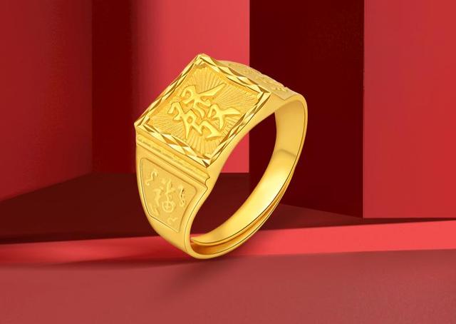 细心观察你会发展,周边有些爷爷或叔伯长辈手指上那枚带有福字或大鹏展翅类图案的黄金戒指, 方方正正 ,却极富寓意。