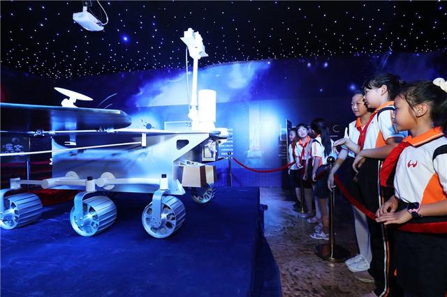南岳完小学生在南岳“祝融号”火星体验馆参观。