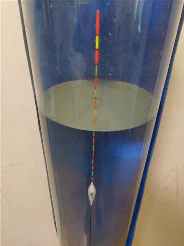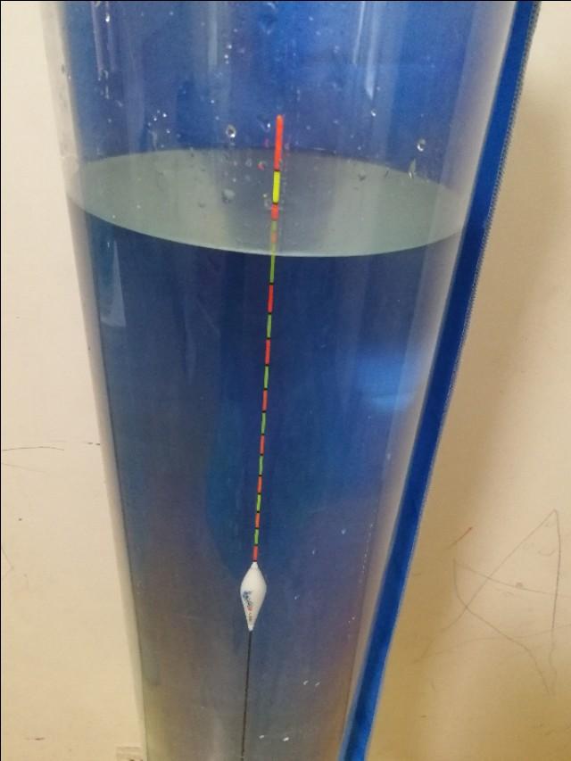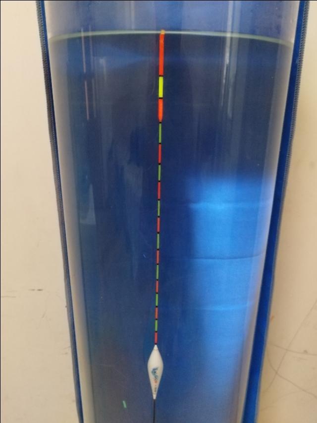 再说的直观一些,三目加粗浮漂,三目往下还是正常的细瞟尾。我做过一个测试,三目加粗的浮漂,我先调一目,然后钩子上挂上合适的重量把它压成平水。然后我再把浮漂调成十目,再把之前钩子上挂的东西再给它挂上去,看它能压下去几目。结果发现细瞟尾压下去四目。这也就是说加粗目一目的浮力相当于以瞟尾四目的浮力。那三目加粗尾就会相当于正常细瞟尾的十二目。那当你调平水钓两三目时,就相当于你在用细瞟尾调平水钓8目,12目,那肯定是非常钝的状态啊!