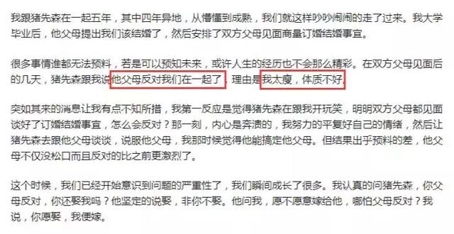 没想到,男方父母反对。理由是她太瘦,体质不好。