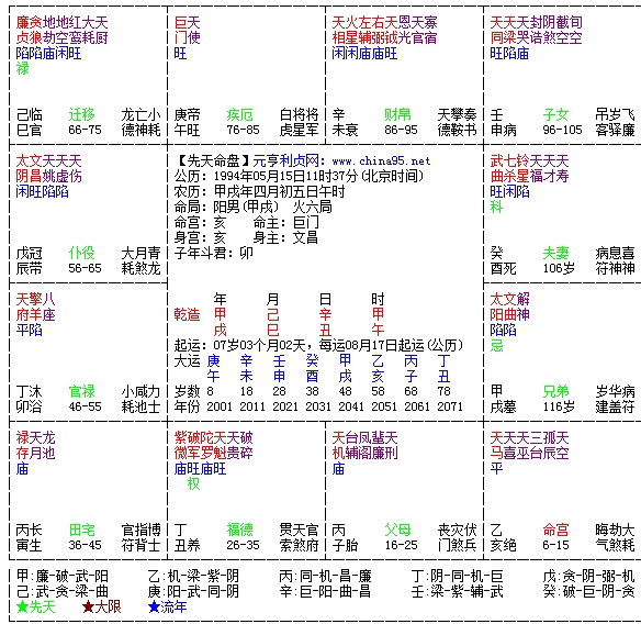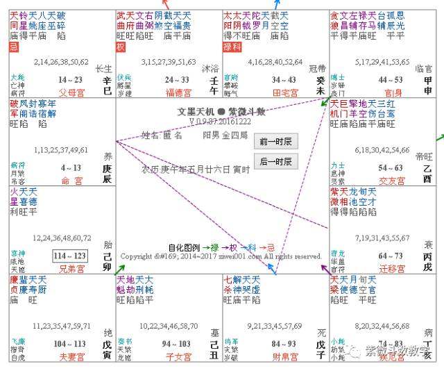 左辅、文昌更偏重精神上的桃花,一般这两个星在命宫三方四正(点击命宫,那个三角和直线所连接的四个宫位)说明这个人更追求 柏拉图式的恋爱。在考虑“出轨”时只是光想不做所以并不严重。